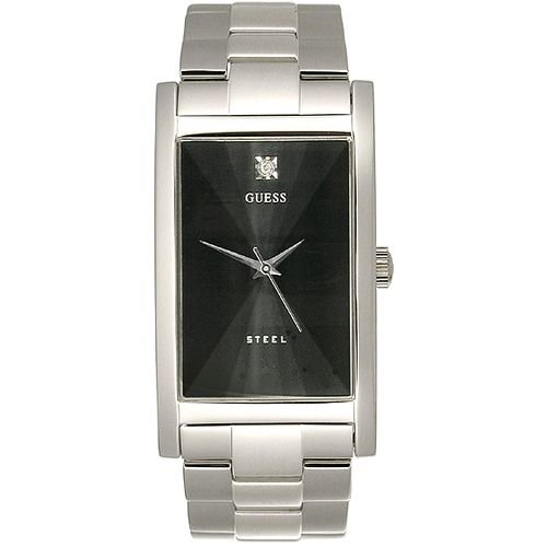 Sexy, bold, and adventurous, this GUESS Men's Stainless Steel Diamond Watch fuses cutting-edge innovation with sleek design. This timepiece is equipped with a 30-millimeter stainless-steel case and a matching stainless-steel band, which includes a fold-over clasp with a double-push-button safety mechanism. The stationary bezel is also made of stainless steel. One brilliant diamond rests at the 12 o'clock position, and the black dial is protected by a durable mineral window. Powered by analog-quartz movement, this watch is water resistant up to 165 feet. This watch is covered by a 10-year manufacturer's warranty.
